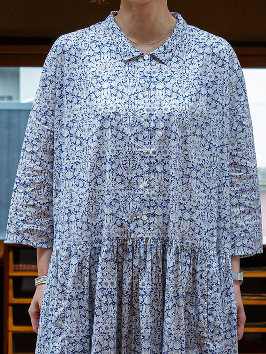 【CHECK&STRIPE(チェック&ストライプ)】小さな衿のローウエストワンピース 「コットンパピエ」