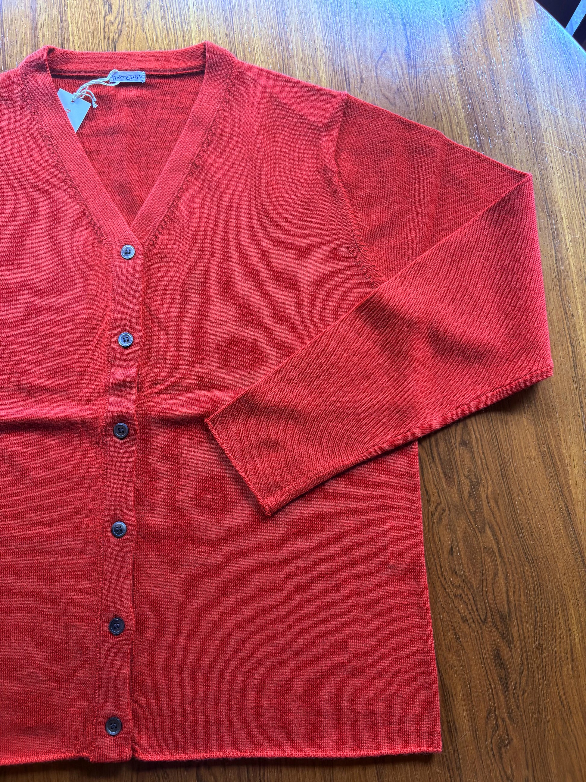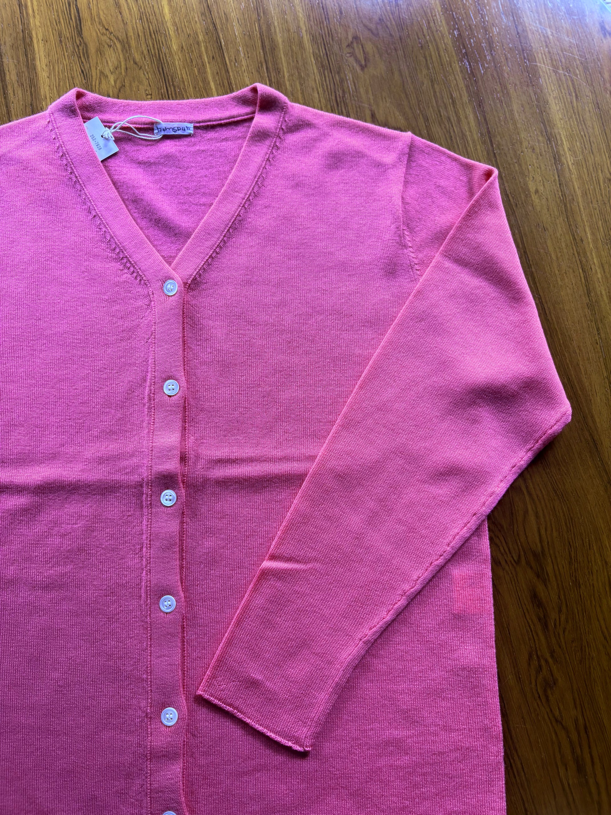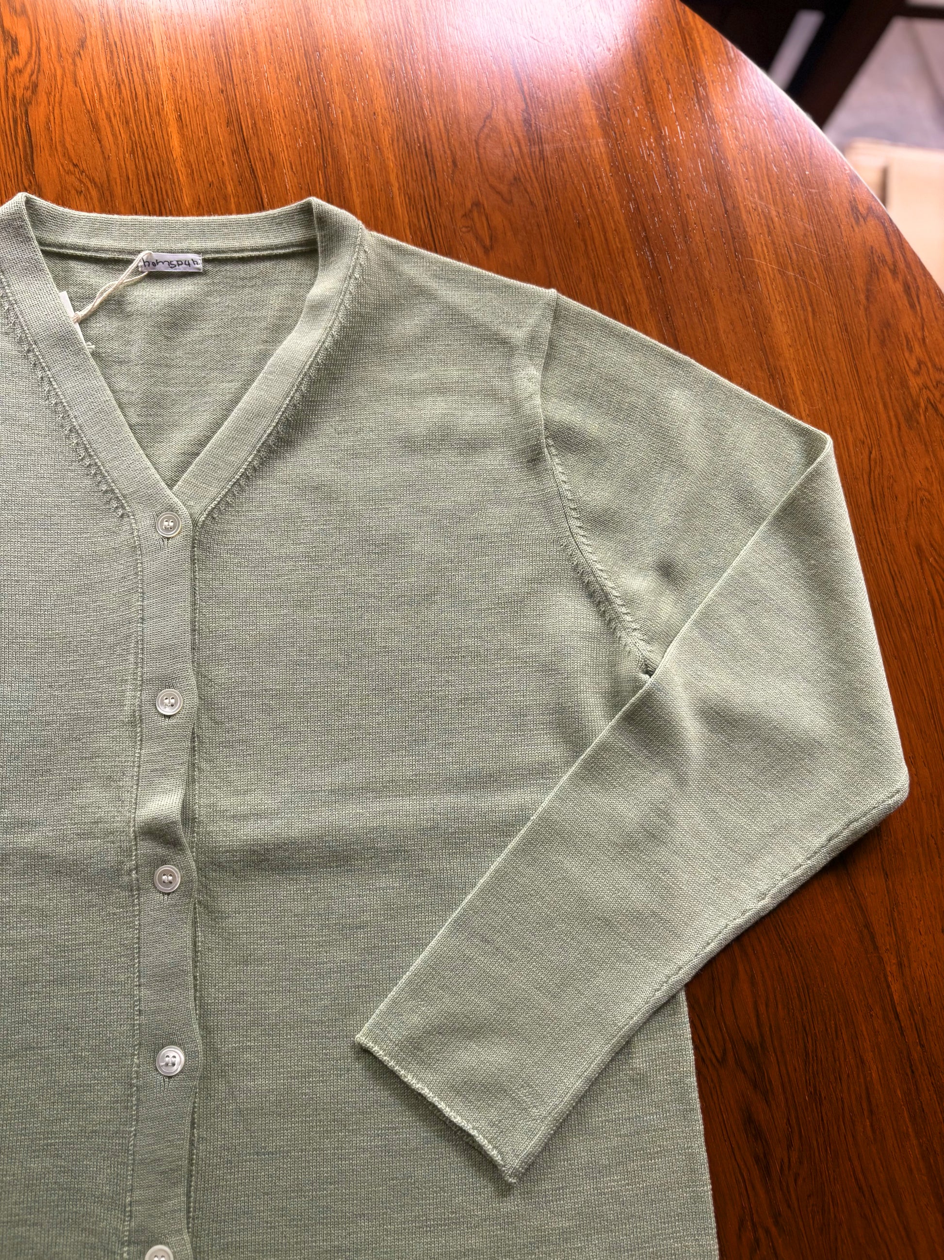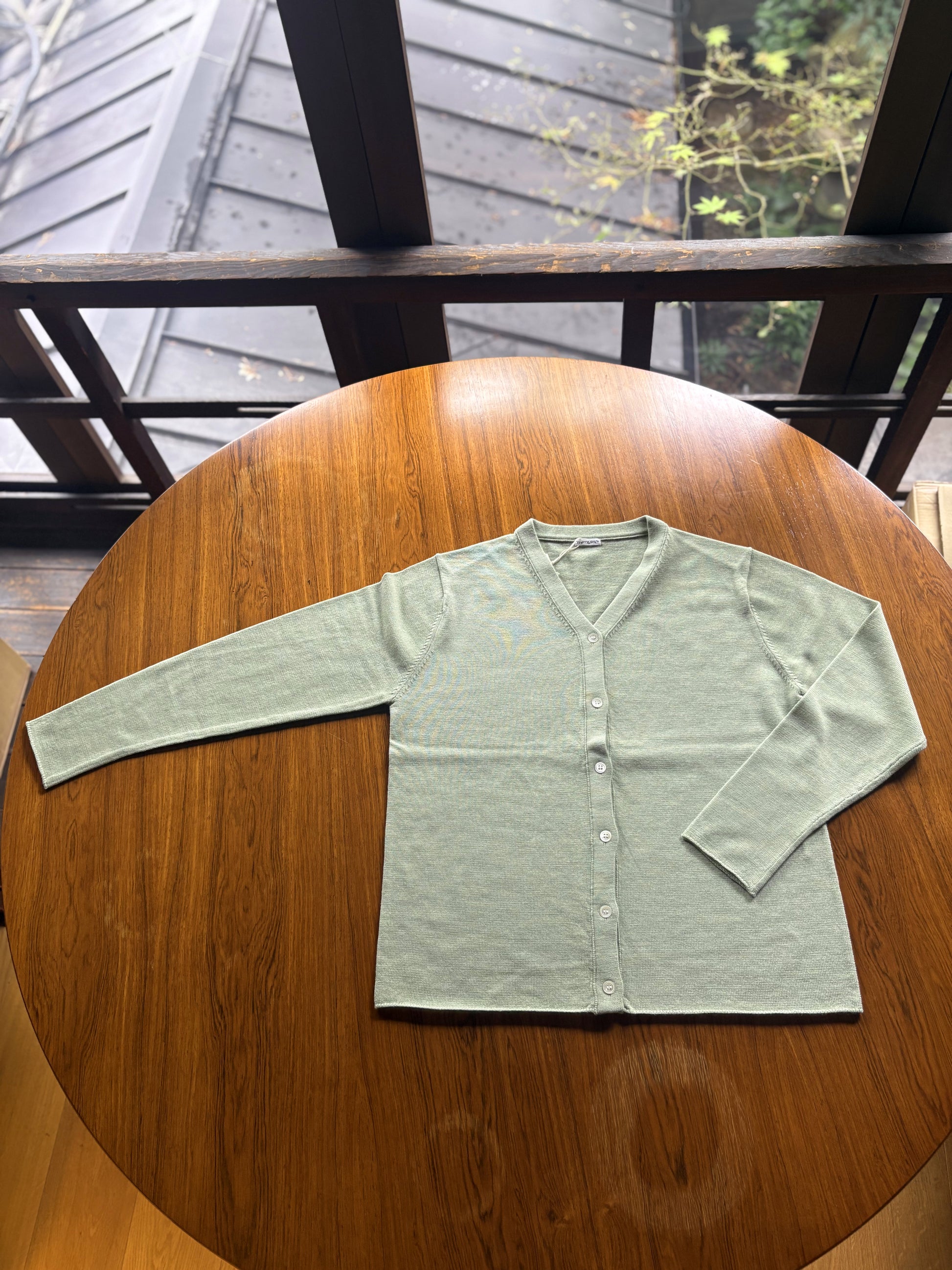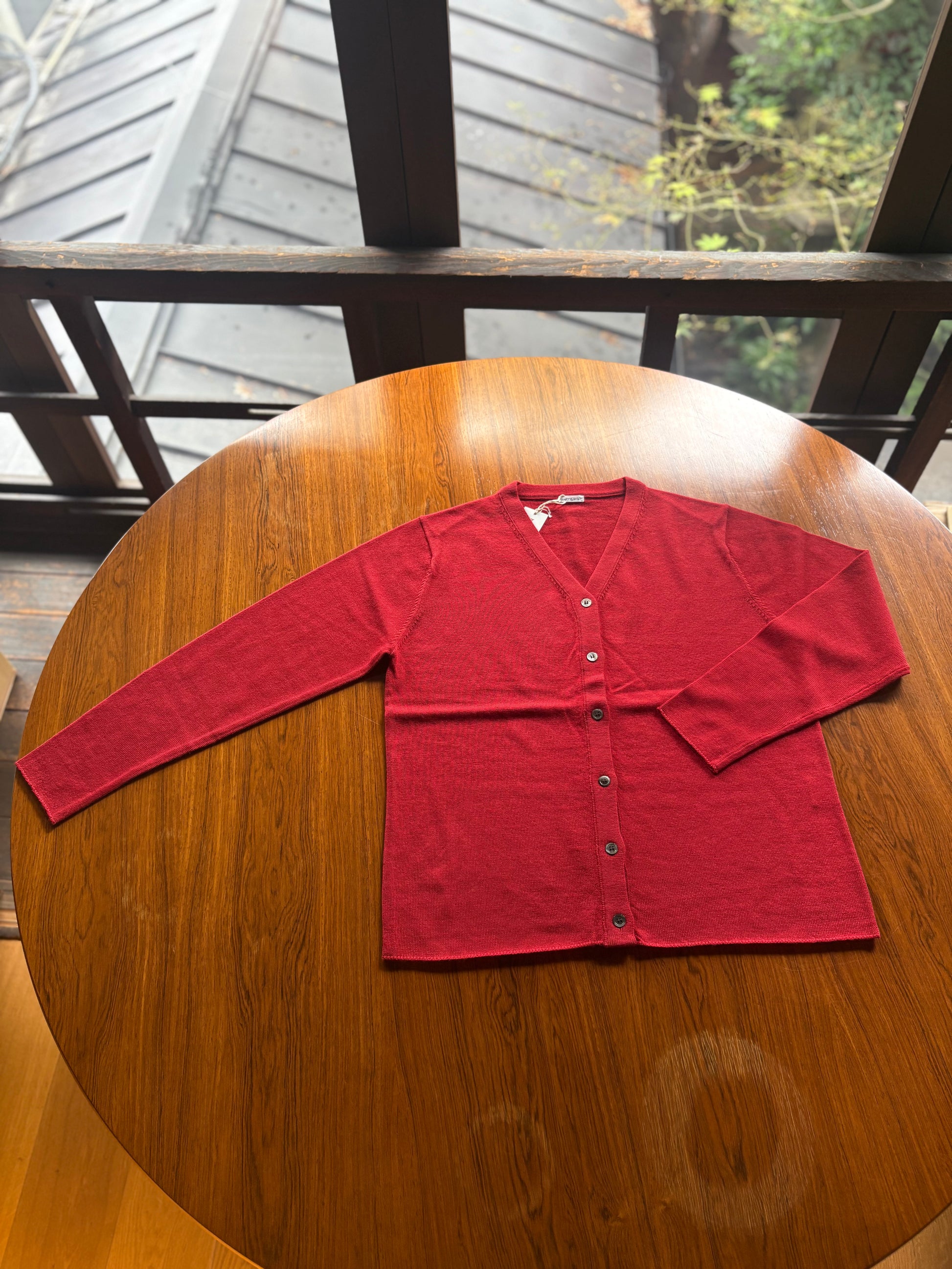 細い糸を使って編みこんだ上質なニット。軽くしなやかで上品な印象です。シンプルなデザインながら、発色が良く美しいカラーはコーディネートのポイントになります。