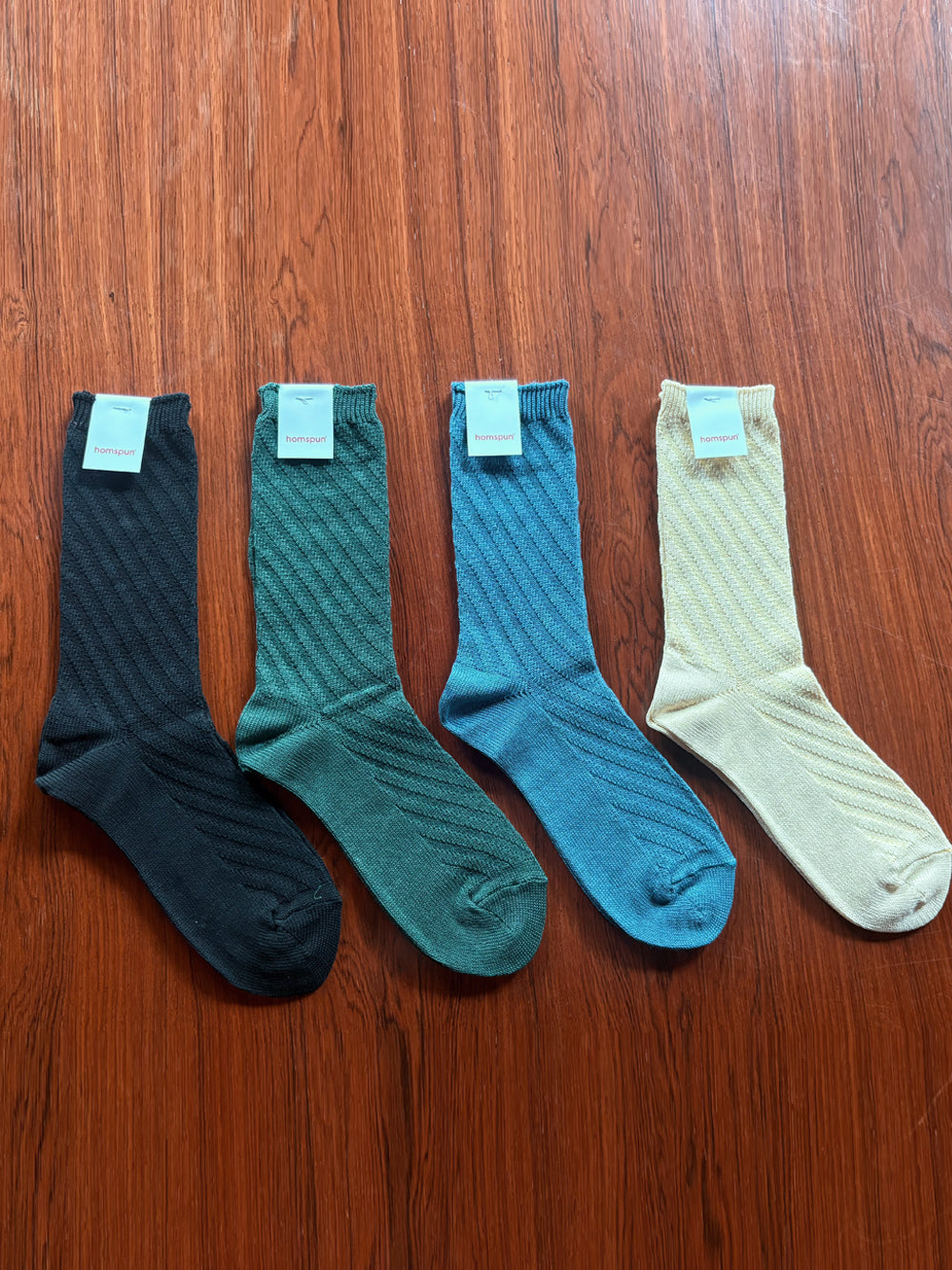 【homspun (ホームスパン) 】シルケットコットン斜めリブソックス