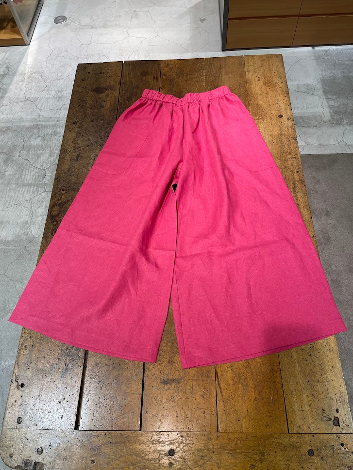 太めの糸を使い、高密度に織られた丈夫なリネンを使用したワイドパンツ。