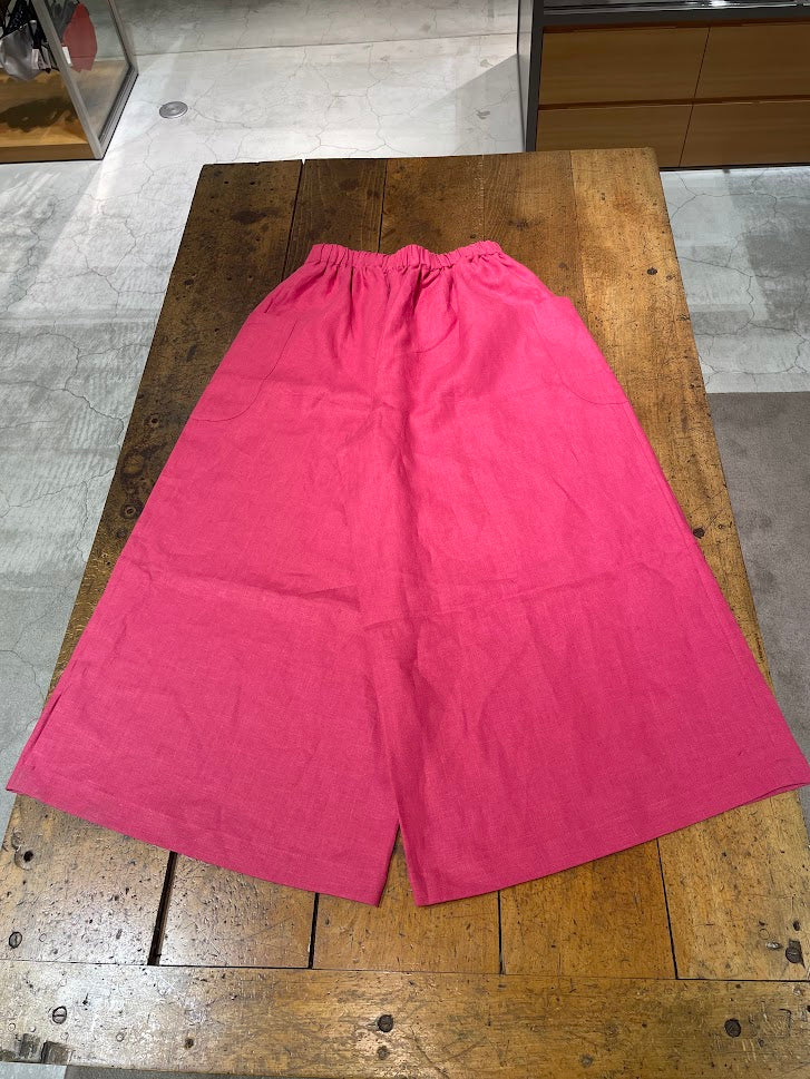 【CHECK&STRIPE(チェック&ストライプ)】ギャザーロングキュロット カラーリネン
