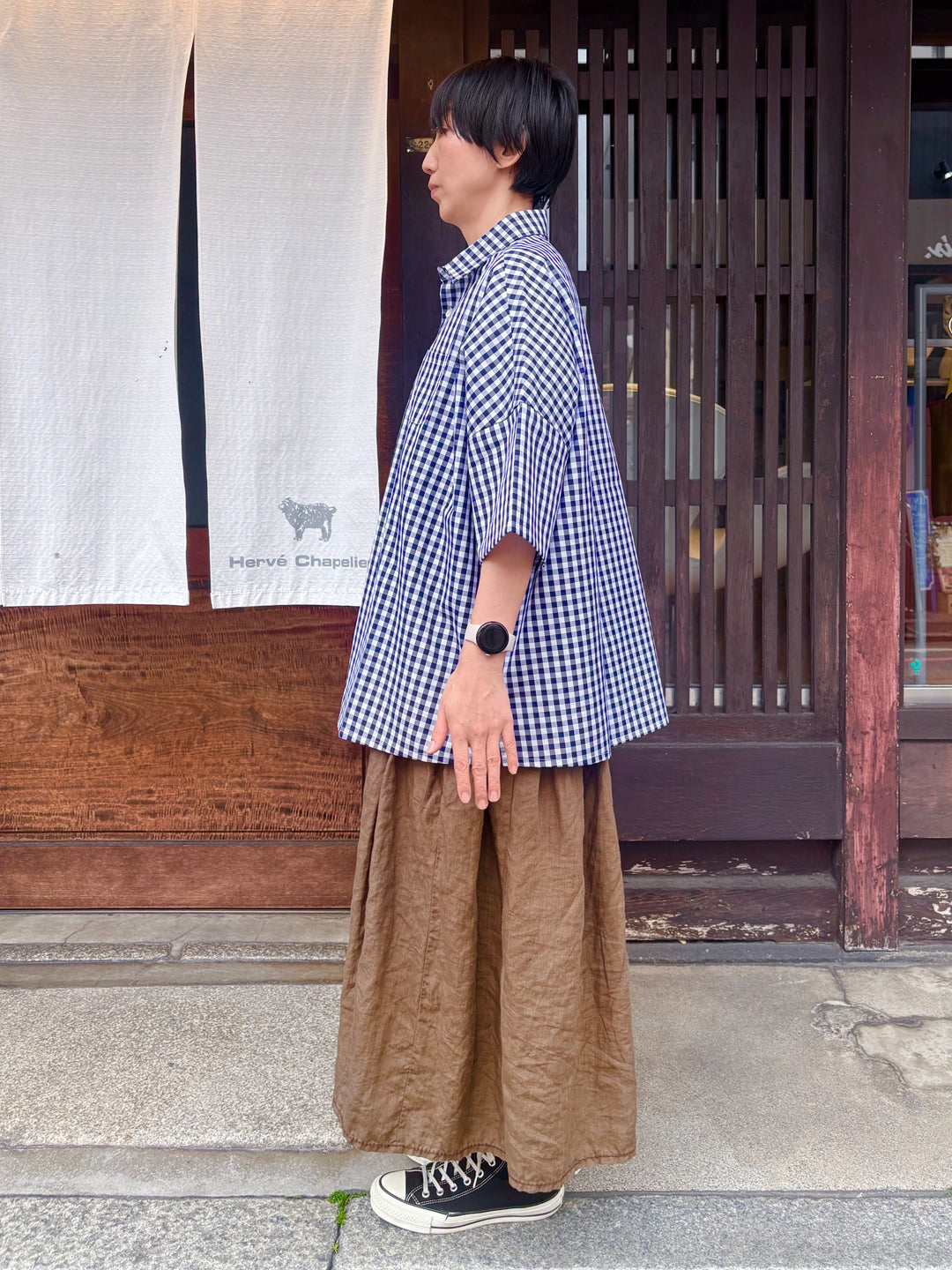 やわらかくしなやかな着心地の半袖シャツ。幅約7mmのギンガムチェックです。