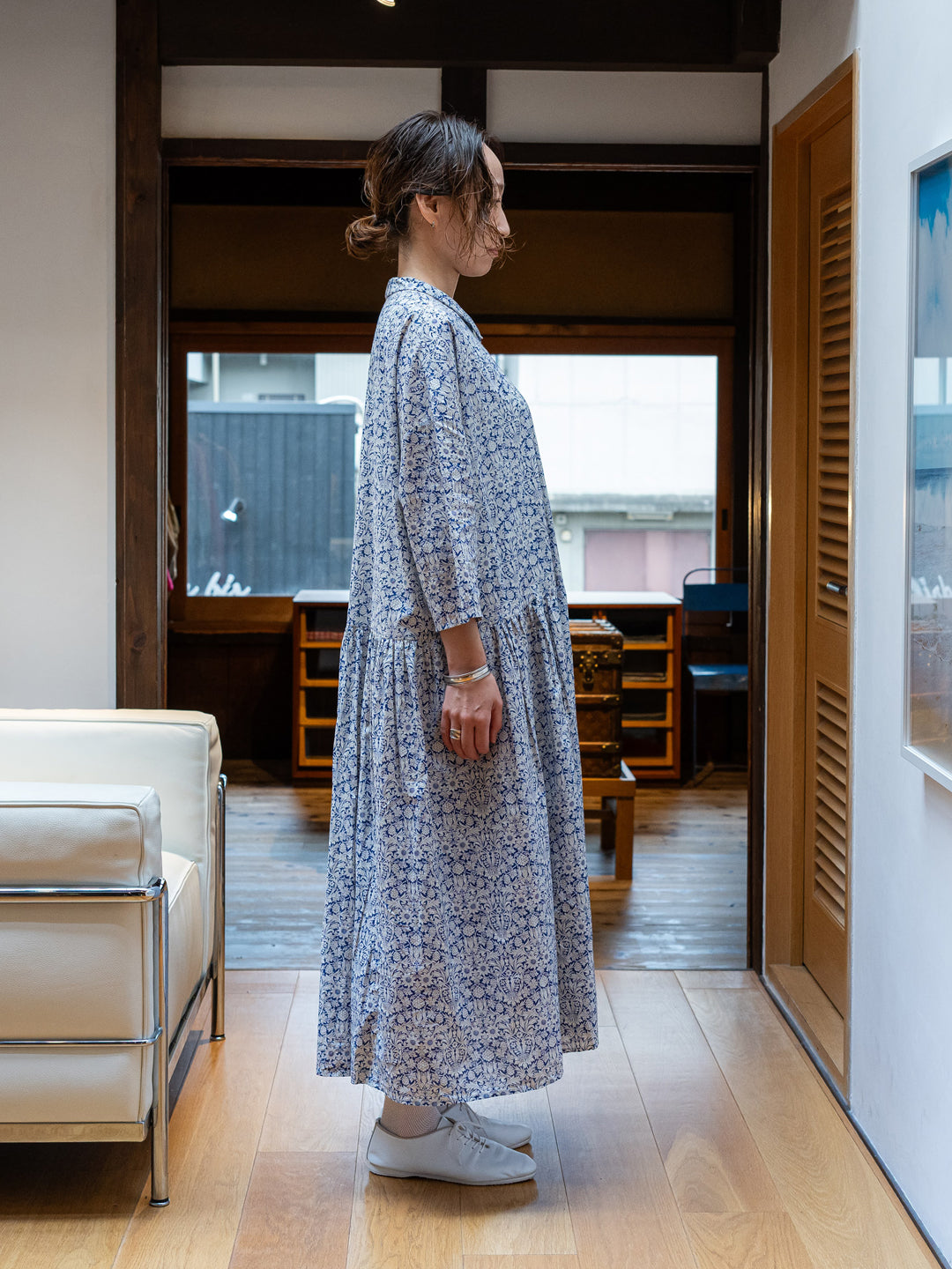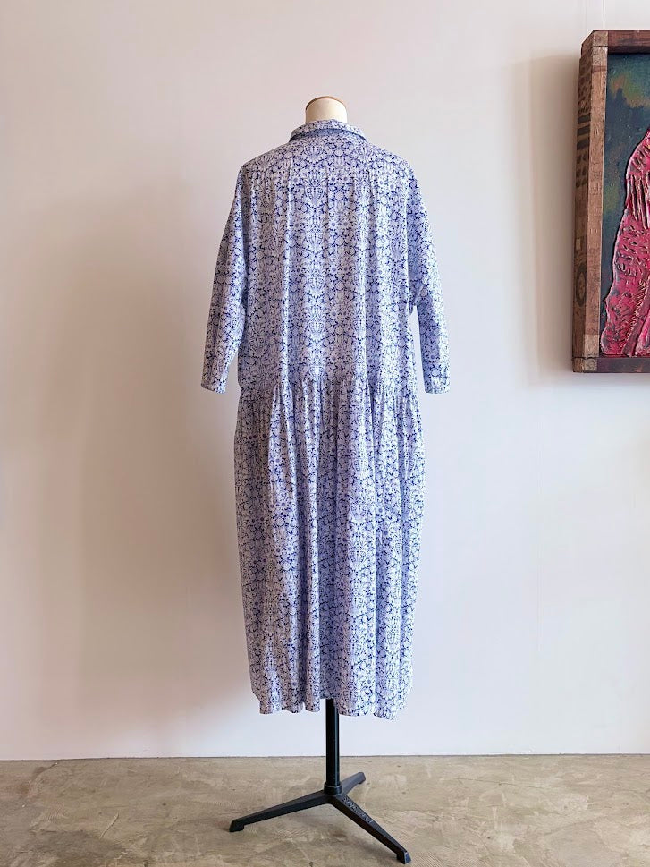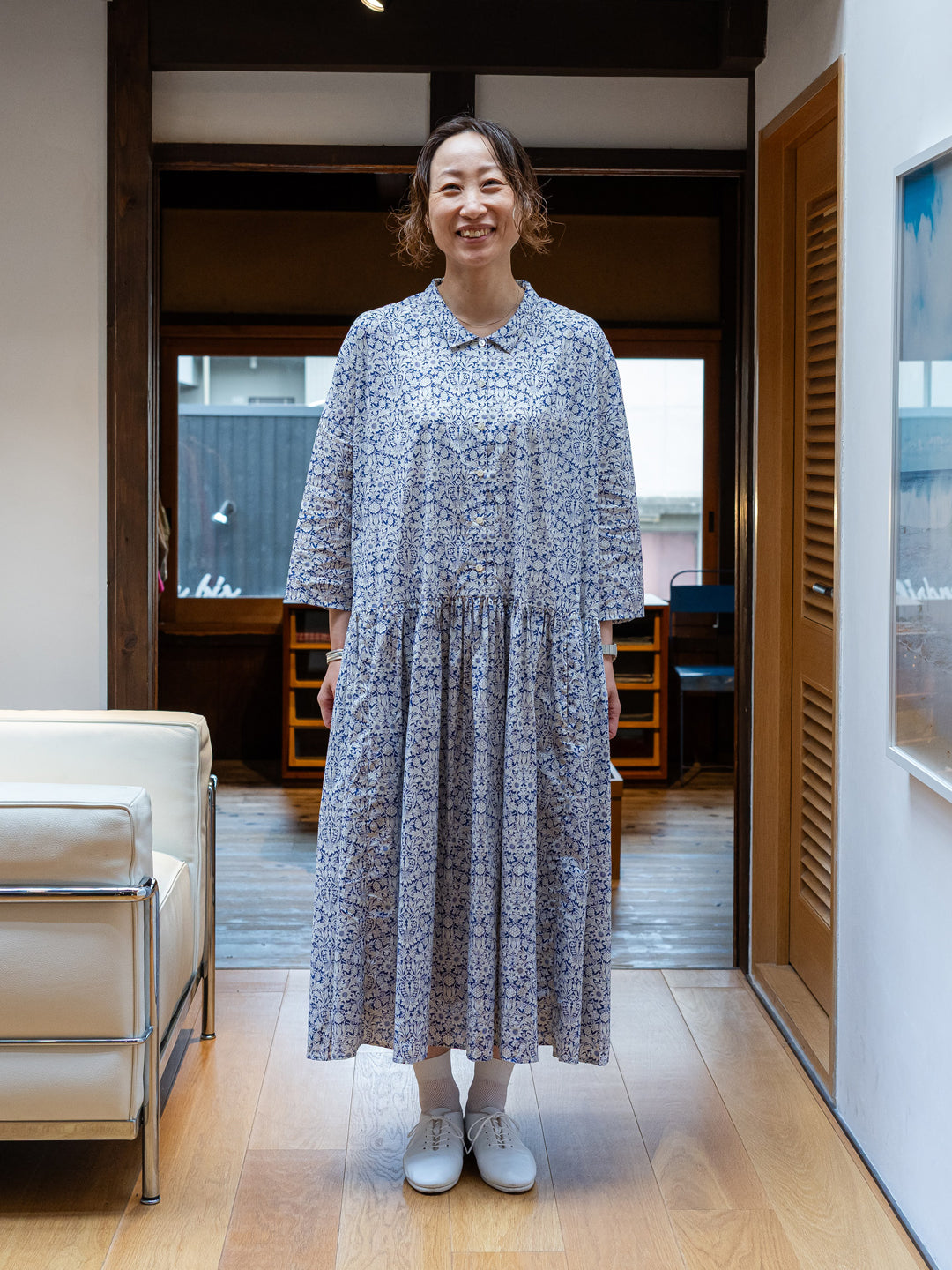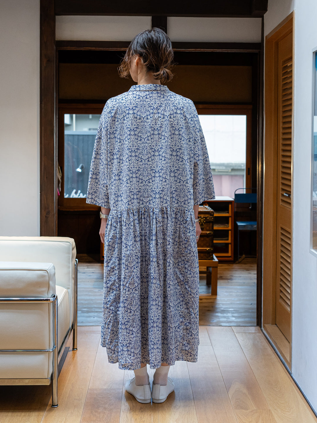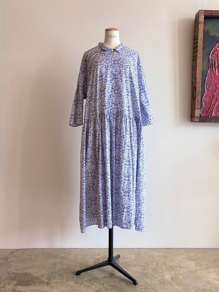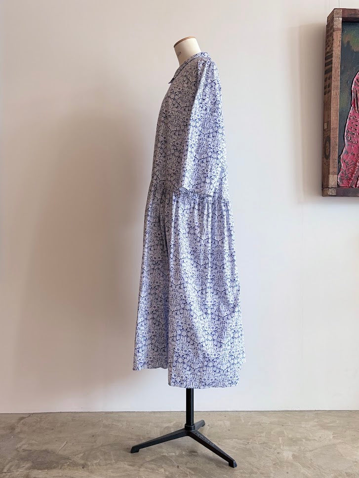 ウィリアムモリスの壁紙のデザインから作られたリバティプリントの生地を使用したワンピース。 落ち着いた柄で上品な着こなしになります。