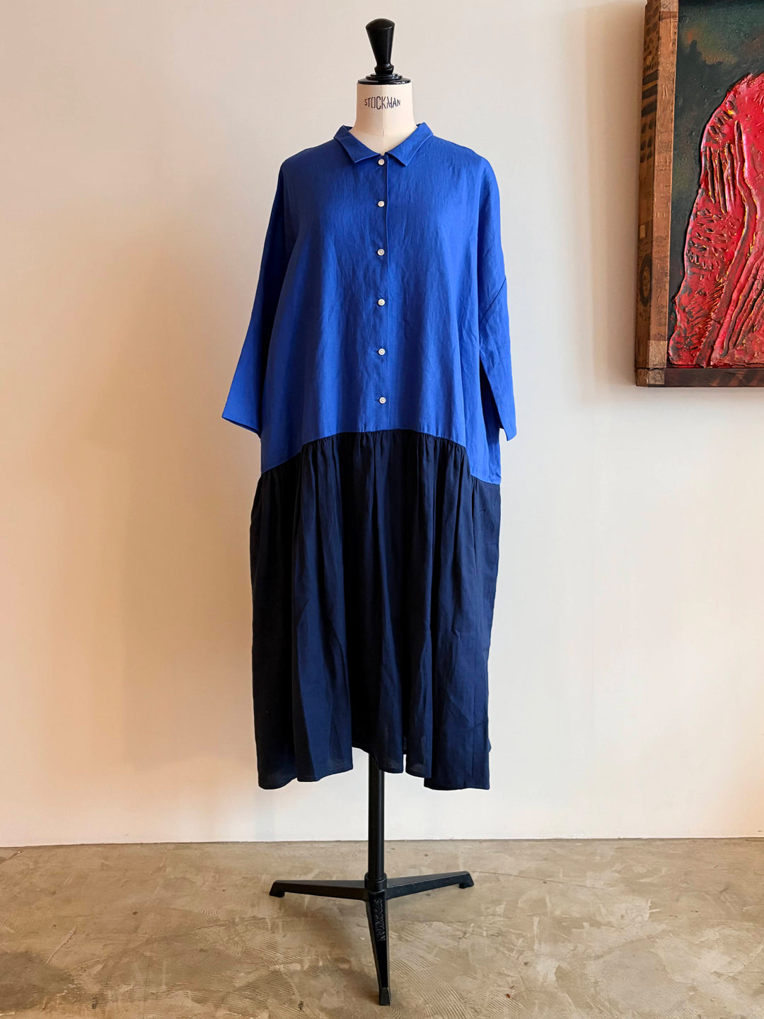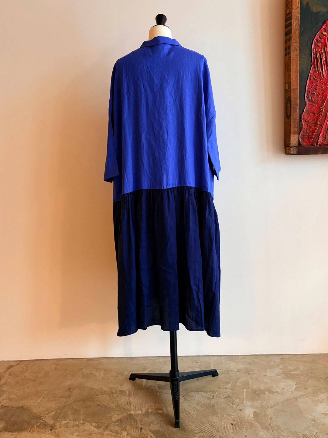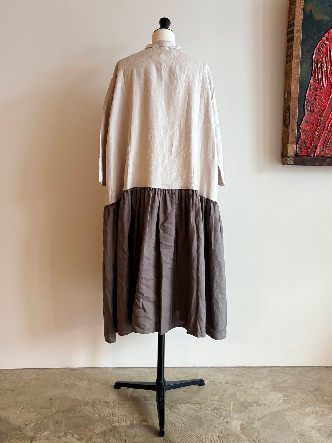 [check&stripe(检查&条纹)]带有小领子的低腰连衣裙“易于亚麻”