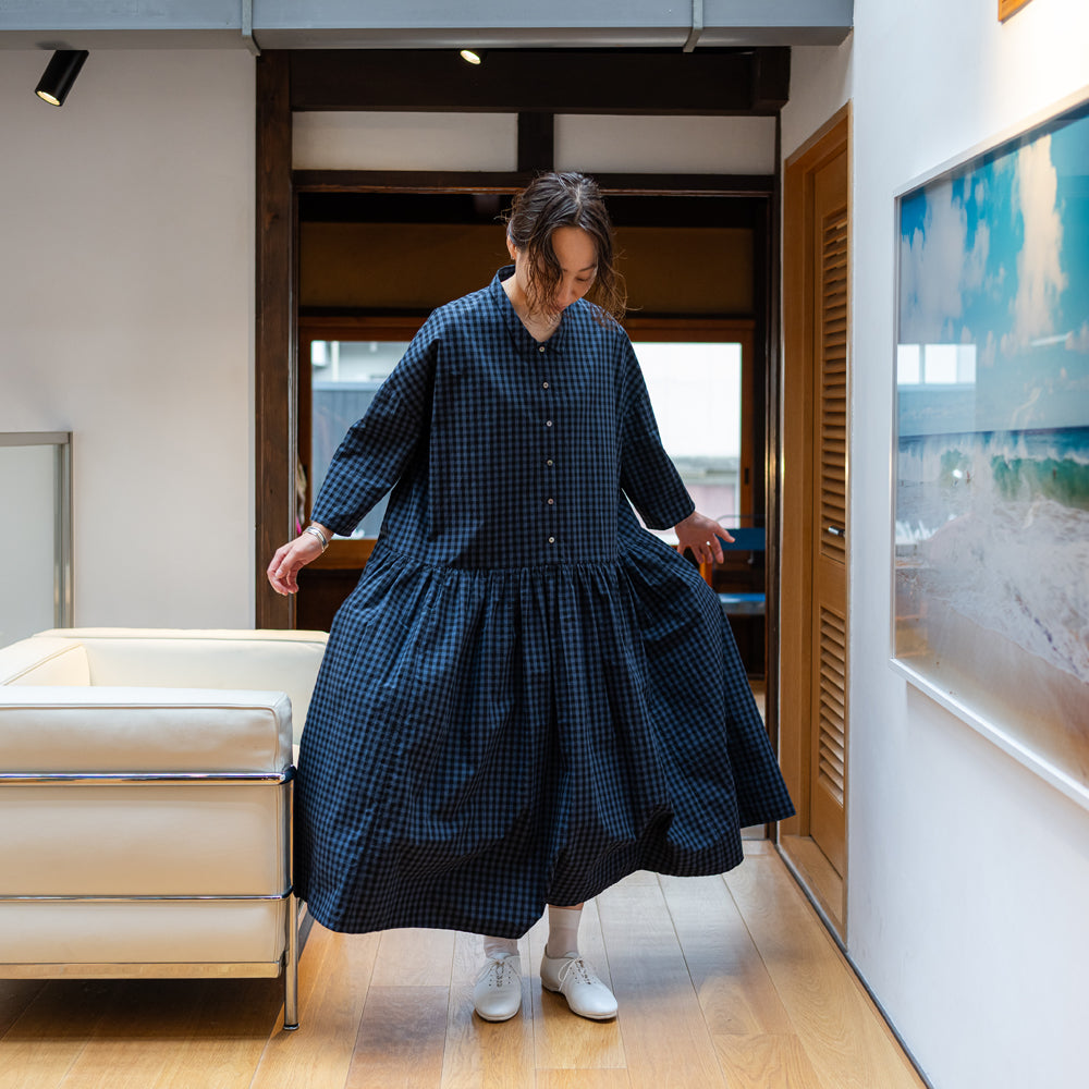高密度で透け感の少ないしっかりした生地感なので、ほどよくボリュームが出ます。 落ち着いたダークカラーのギンガムチェックは、シーズン問わずお使いいただけます。