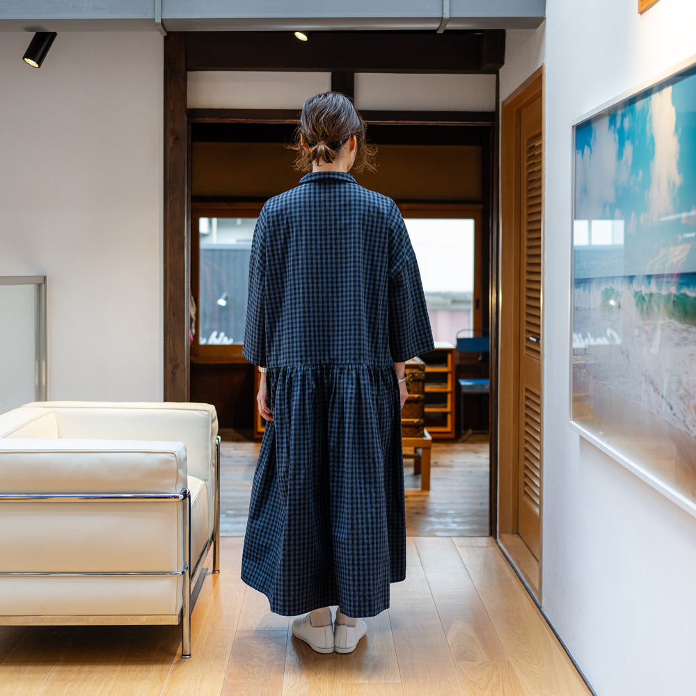 【CHECK&STRIPE(チェック&ストライプ)】小さな衿のローウエストワンピース 「コットンパピエ」 ギンガムチェック