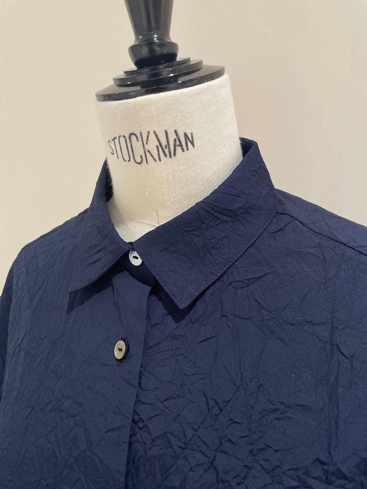 しわ加工を施した肌触りの良いコットン生地を使用した半袖シャツ。